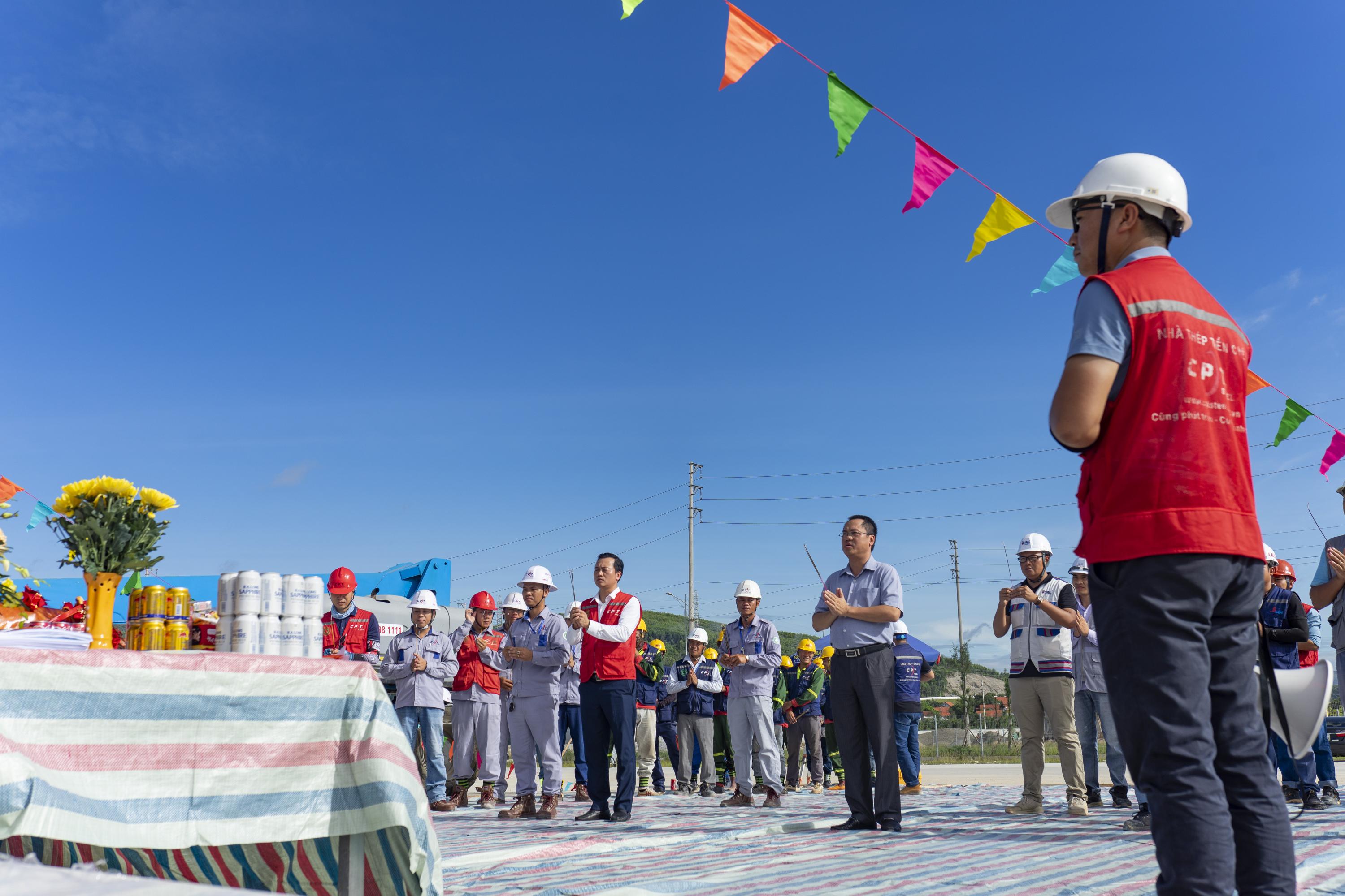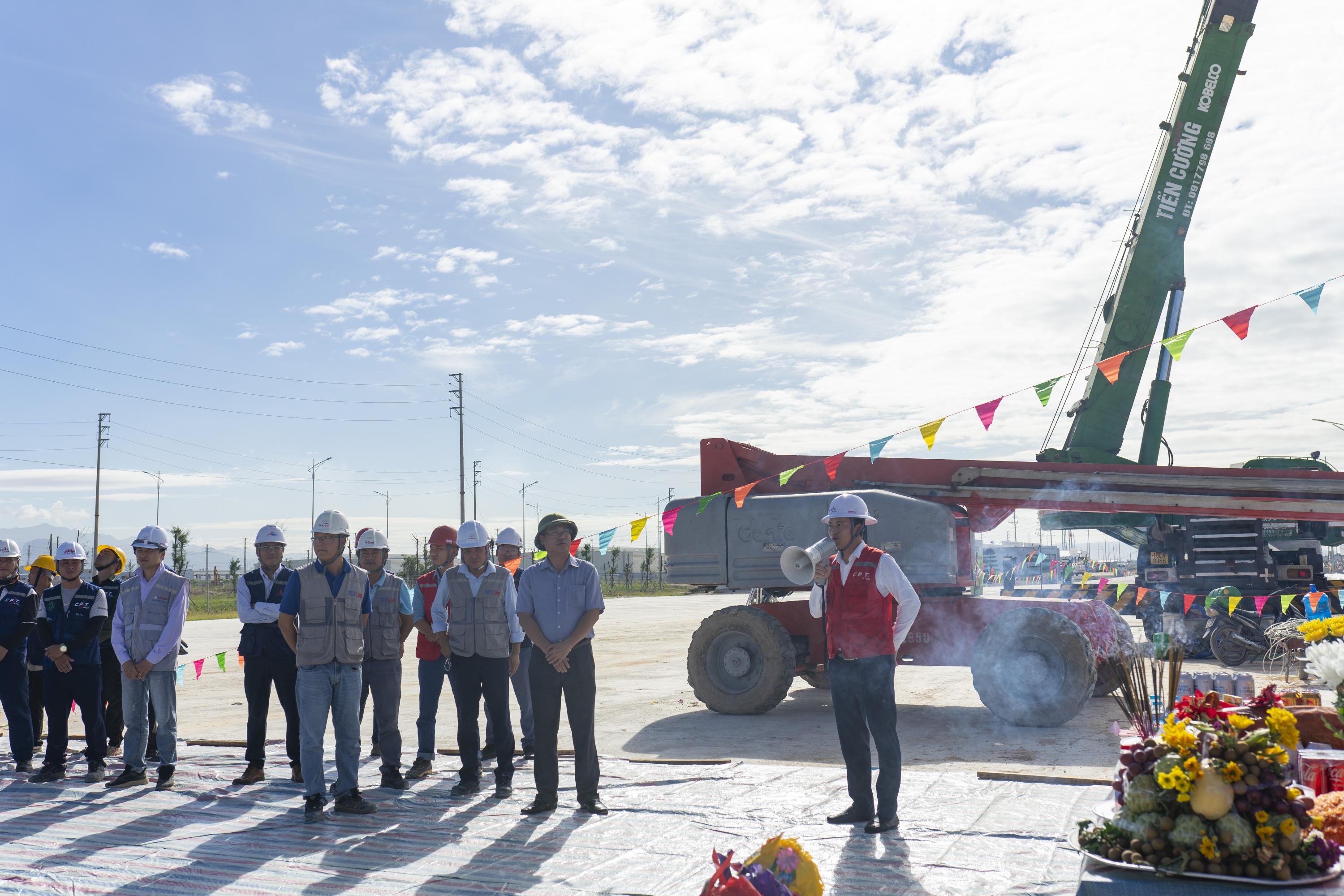 Tới dự lễ khởi công, có đại diện lãnh đạo của Chủ đầu tư, Tư vấn giám sát và lãnh đạo đơn vị nhà thầu CPT Group. Đây là một dự án trọng điểm của Chủ đầu tư trong chiến lược phát triển bền vững của Doanh nghiệp, Vậy nên CPT hân hạnh và luôn đặt mục tiêu cao nhất để dự án hoàn thành đúng như cam kết, từ khâu thiết kế tối ưu, sản xuất đến chuẩn bị lắp dựng và lắp dựng.